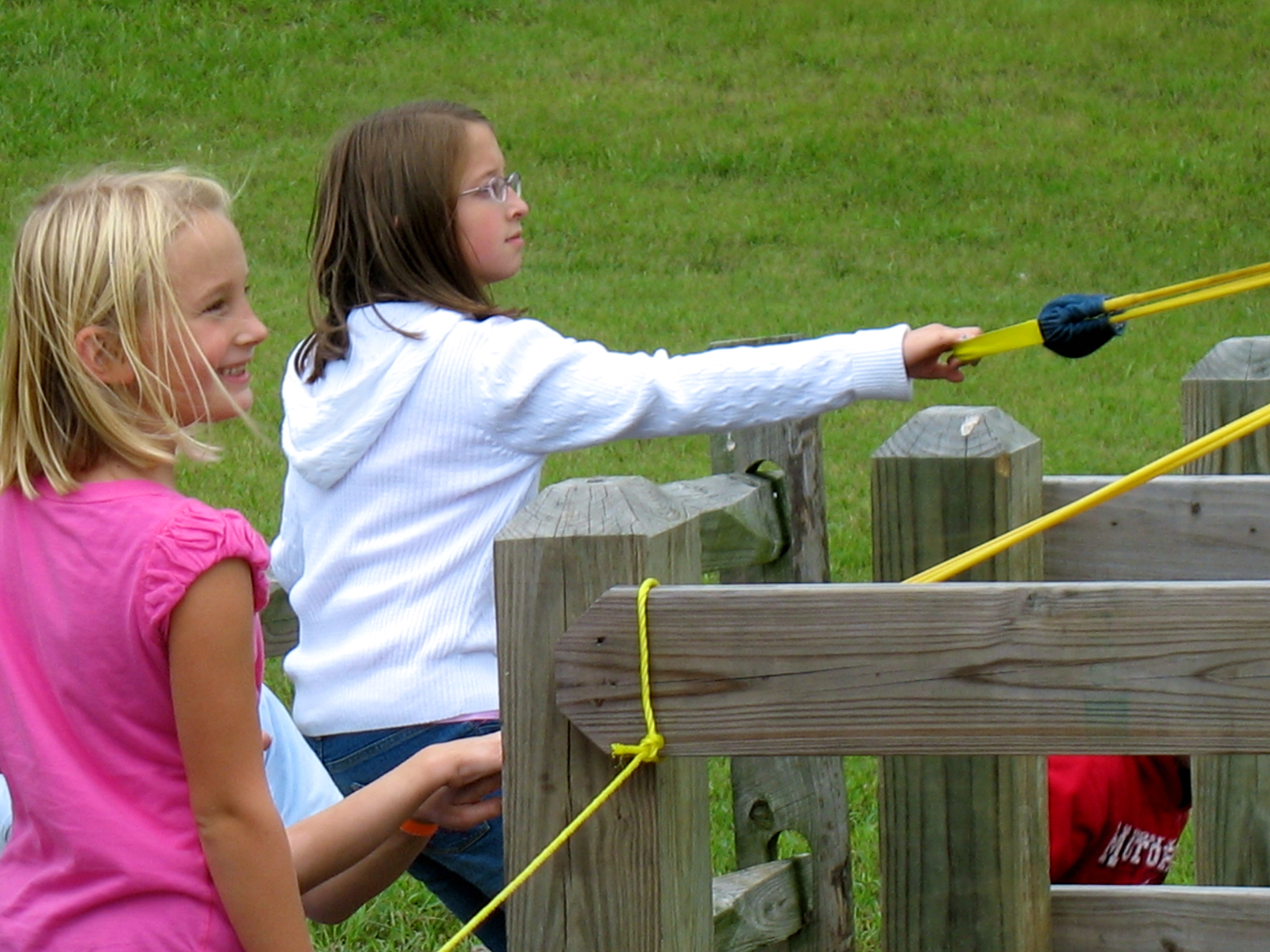 Next came the giant sling shots in which you attempt to hurl tennis balls at hanging targets.