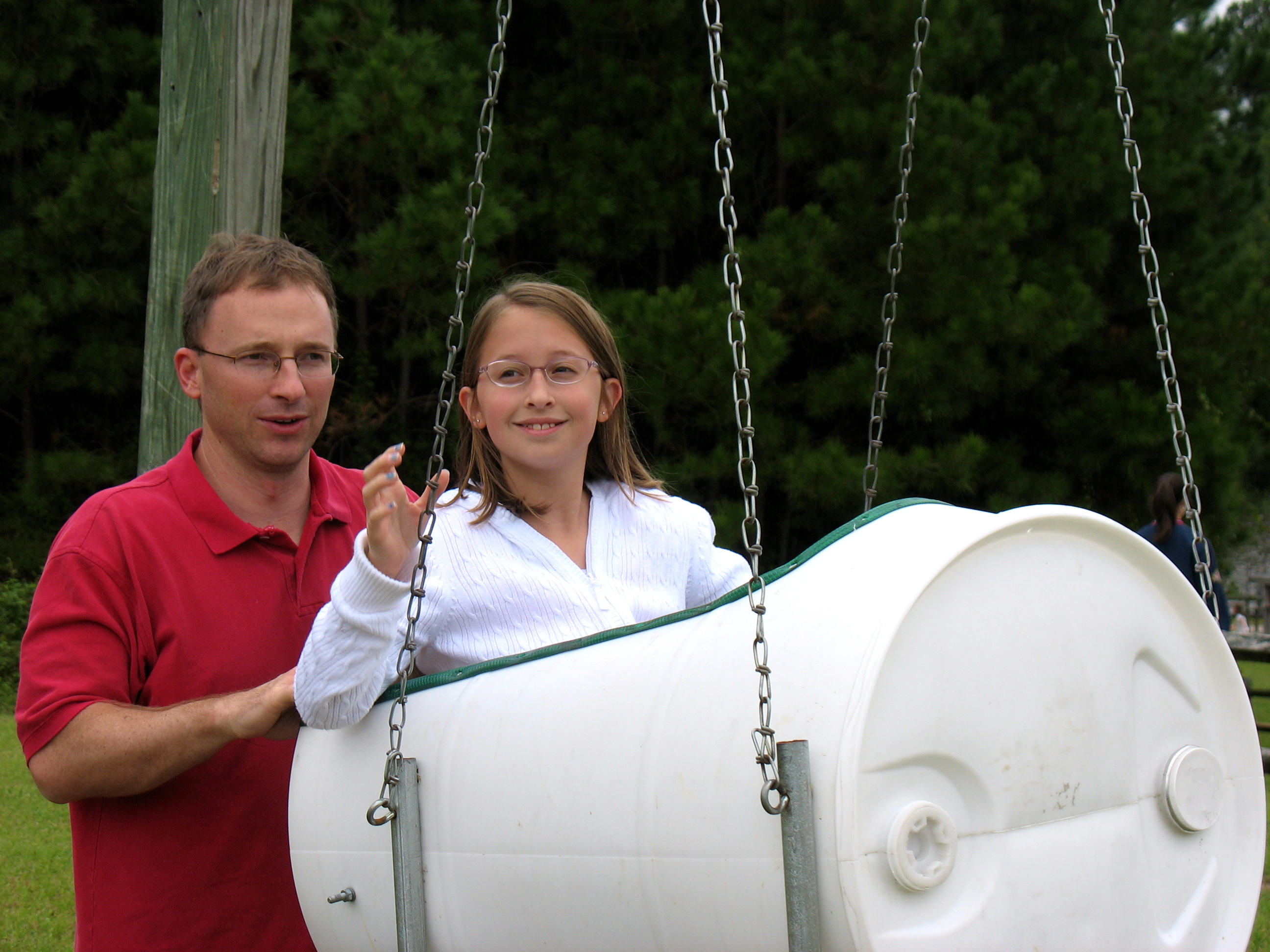 Duff made the mediocre zip line super fun by pushing the kids at top speed!