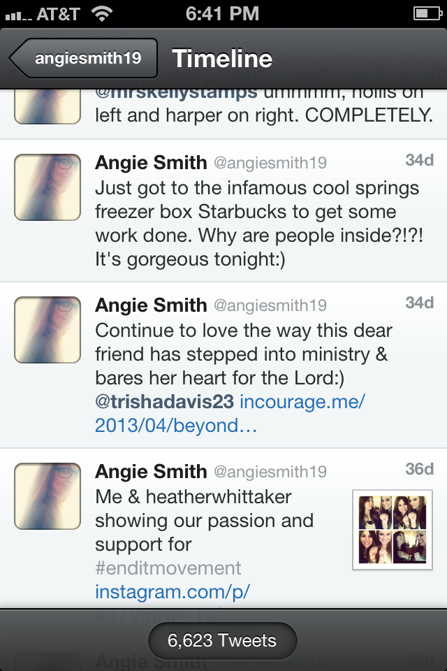 I stalk some really cool people on Twitter. One of them being Angie Smith.