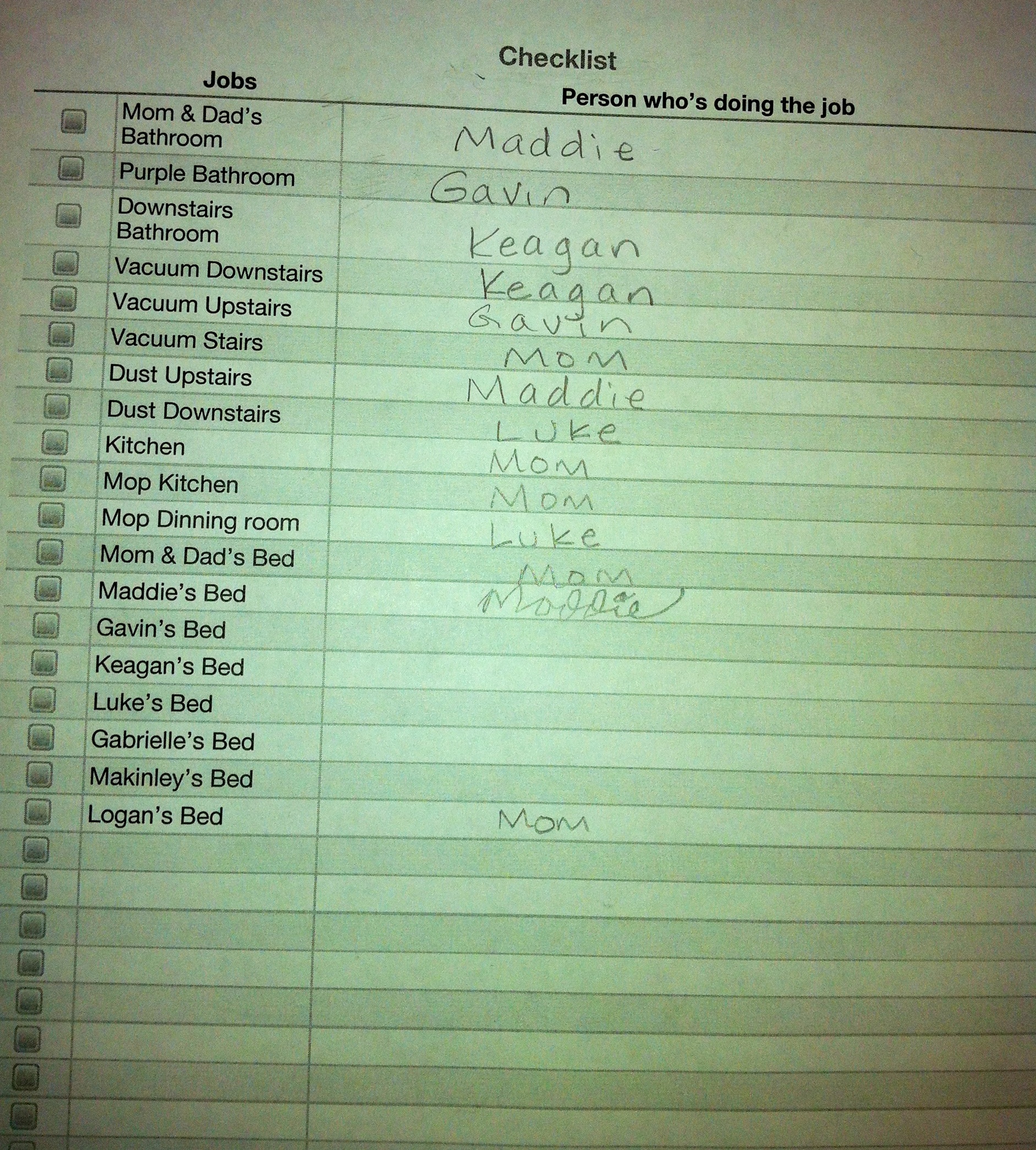 Friday mornings I make cleaning assignments, then once we’ve eaten breakfast and wrapped up all schoolwork for the week, we get started on our jobs.