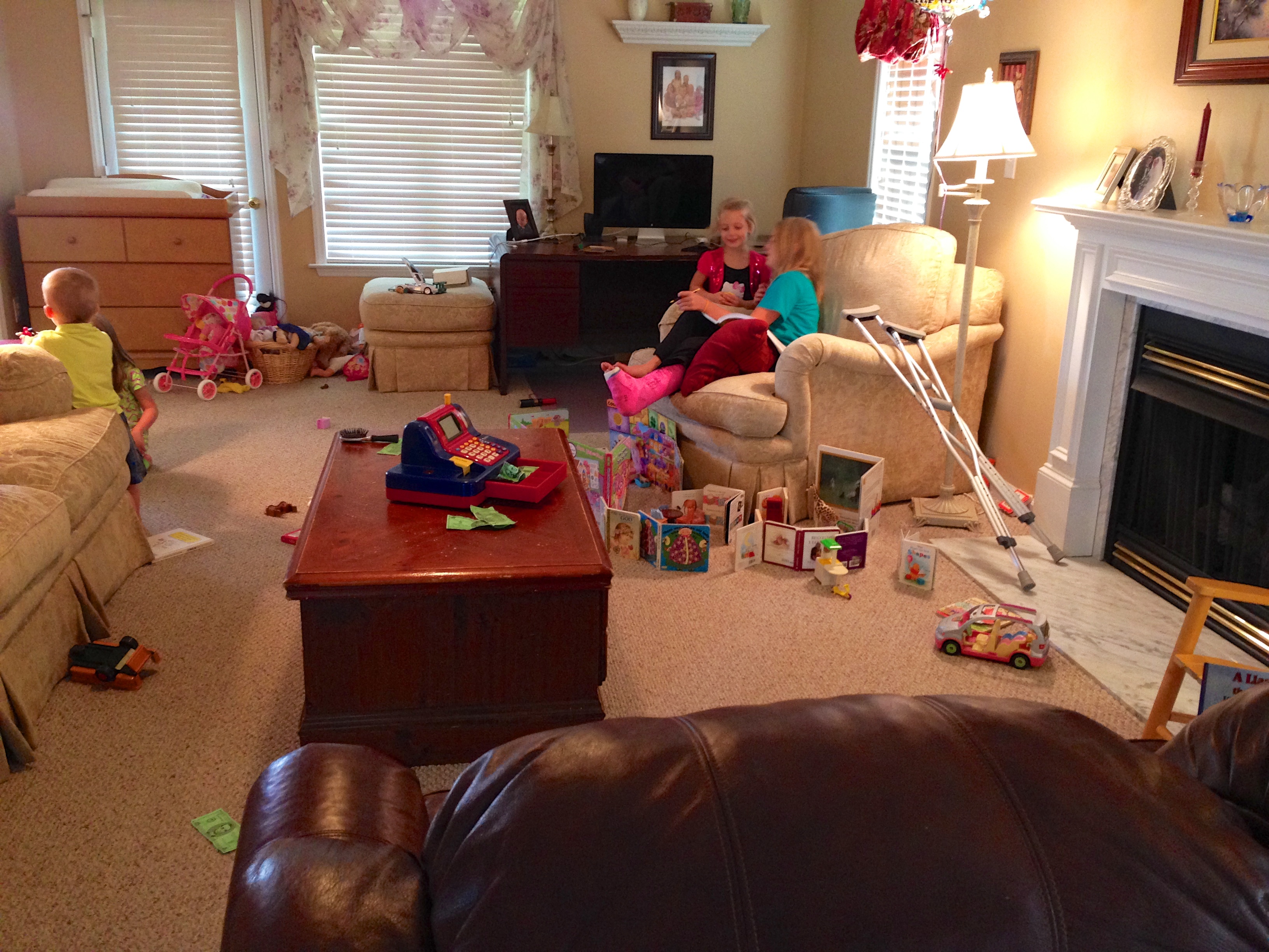 Cluttered rooms, fingerprint-covered windows, piles of dirty laundry, Legos strewn across the floor, a sink filled with dirty dishes, sticky messes, crushed Cheerios underfoot…