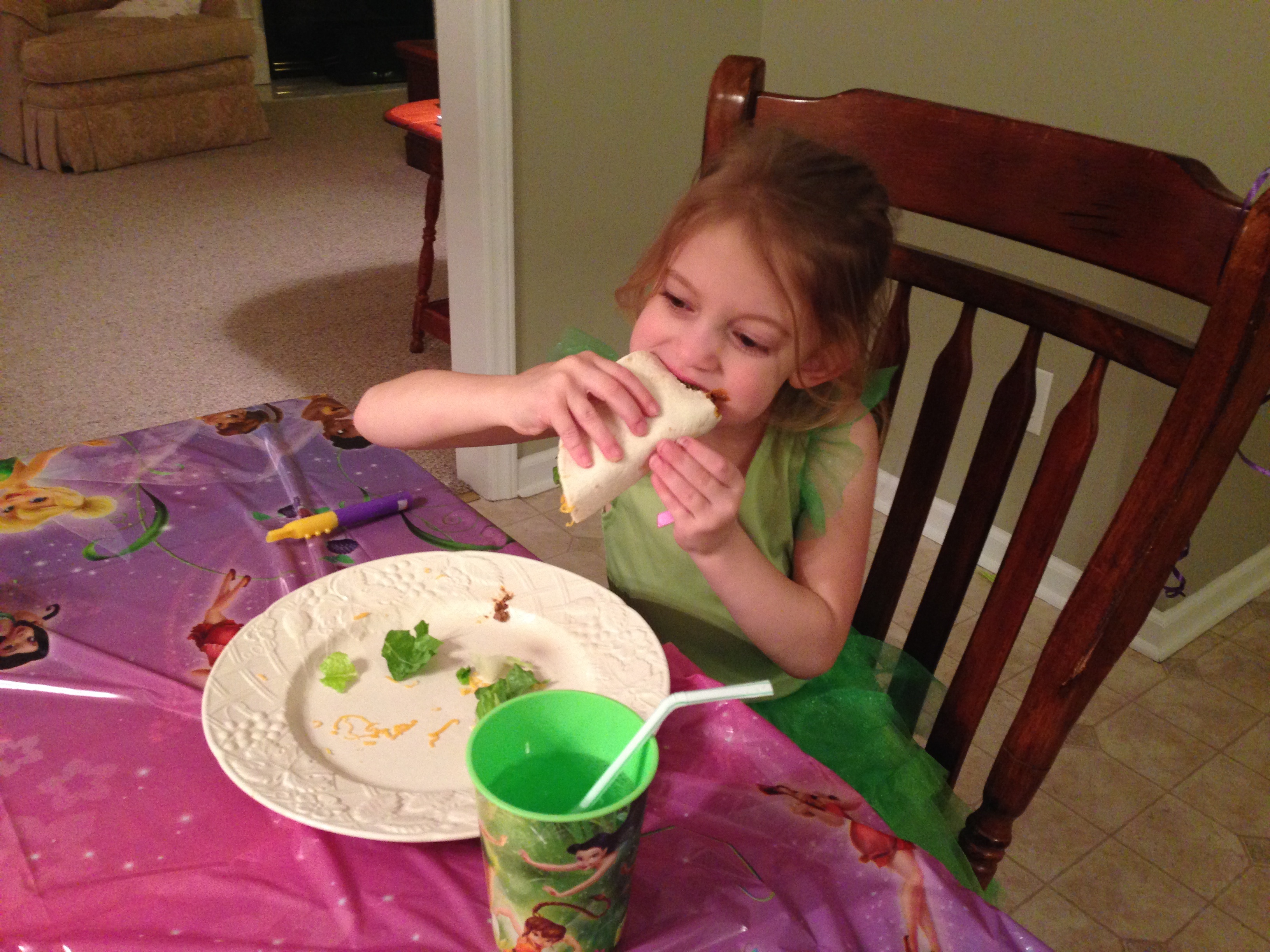 Hide-and-go-seek had worked up an appetite. We had tacos for dinner, one of her favorites. She loves all things Mexican.