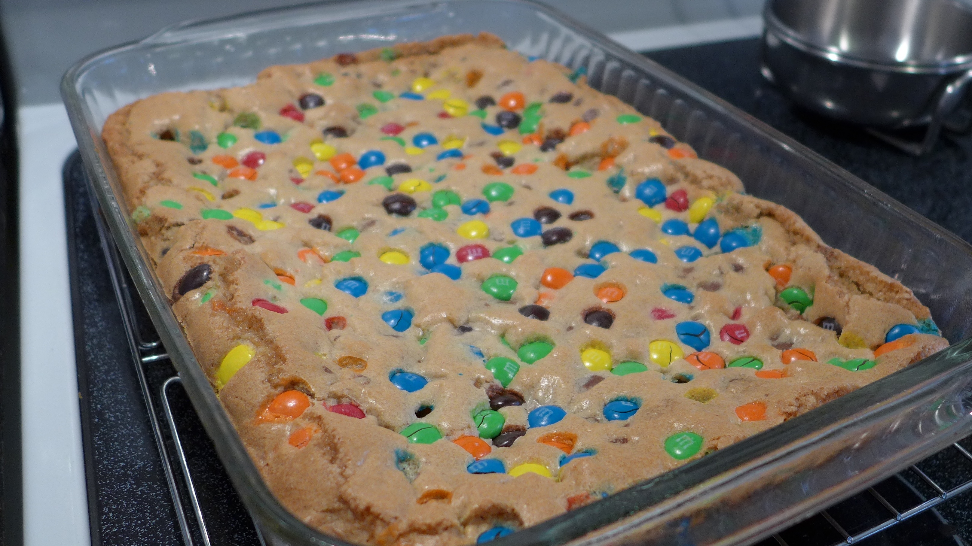 We baked M&M bars, sliced strawberries, and set out Doritos with soda pop.