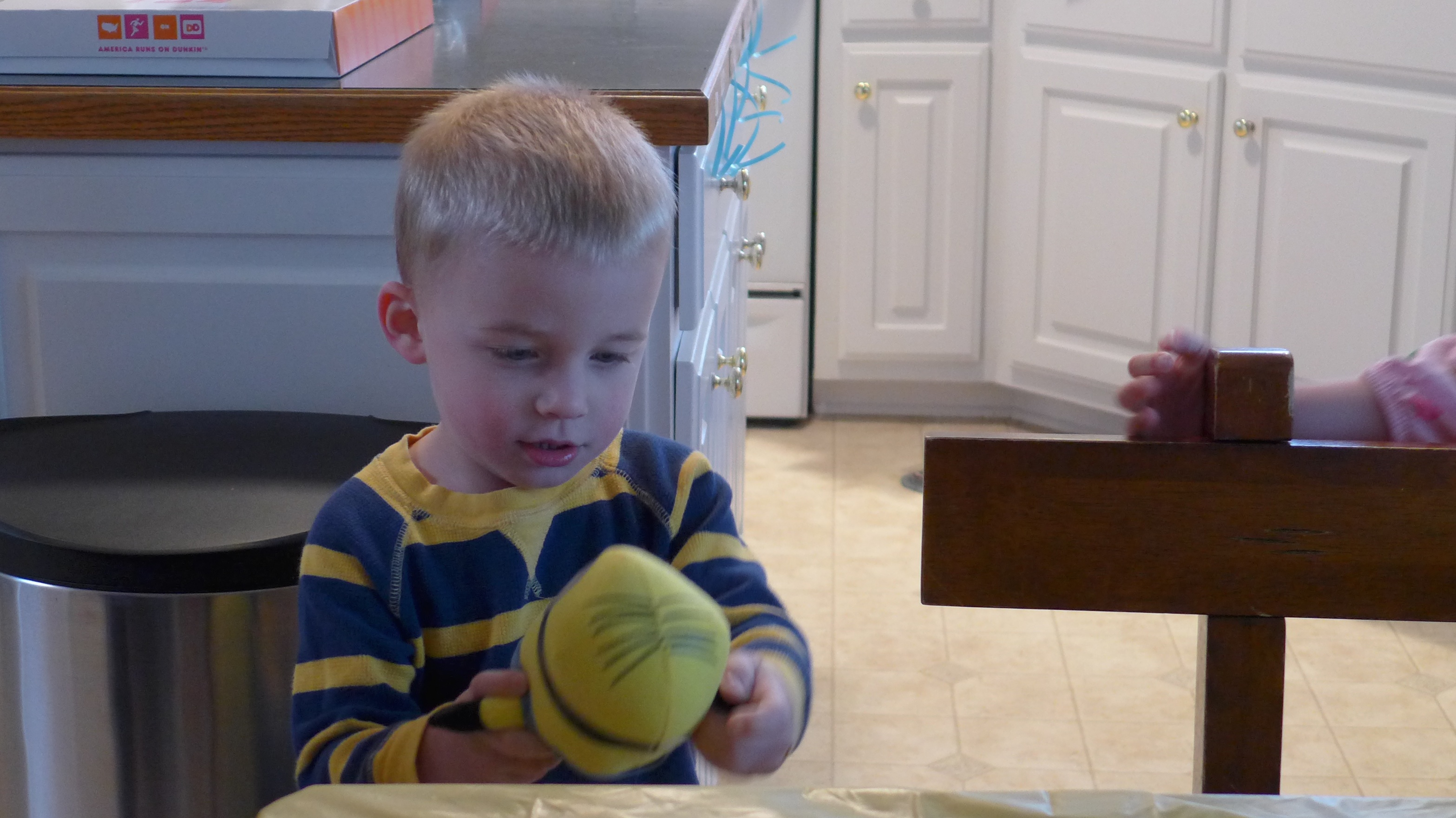 I found it very amusing that my boy kept using his Play-Doh pocket knife to help cut the ribbons. Can’t imagine where he gets this from.