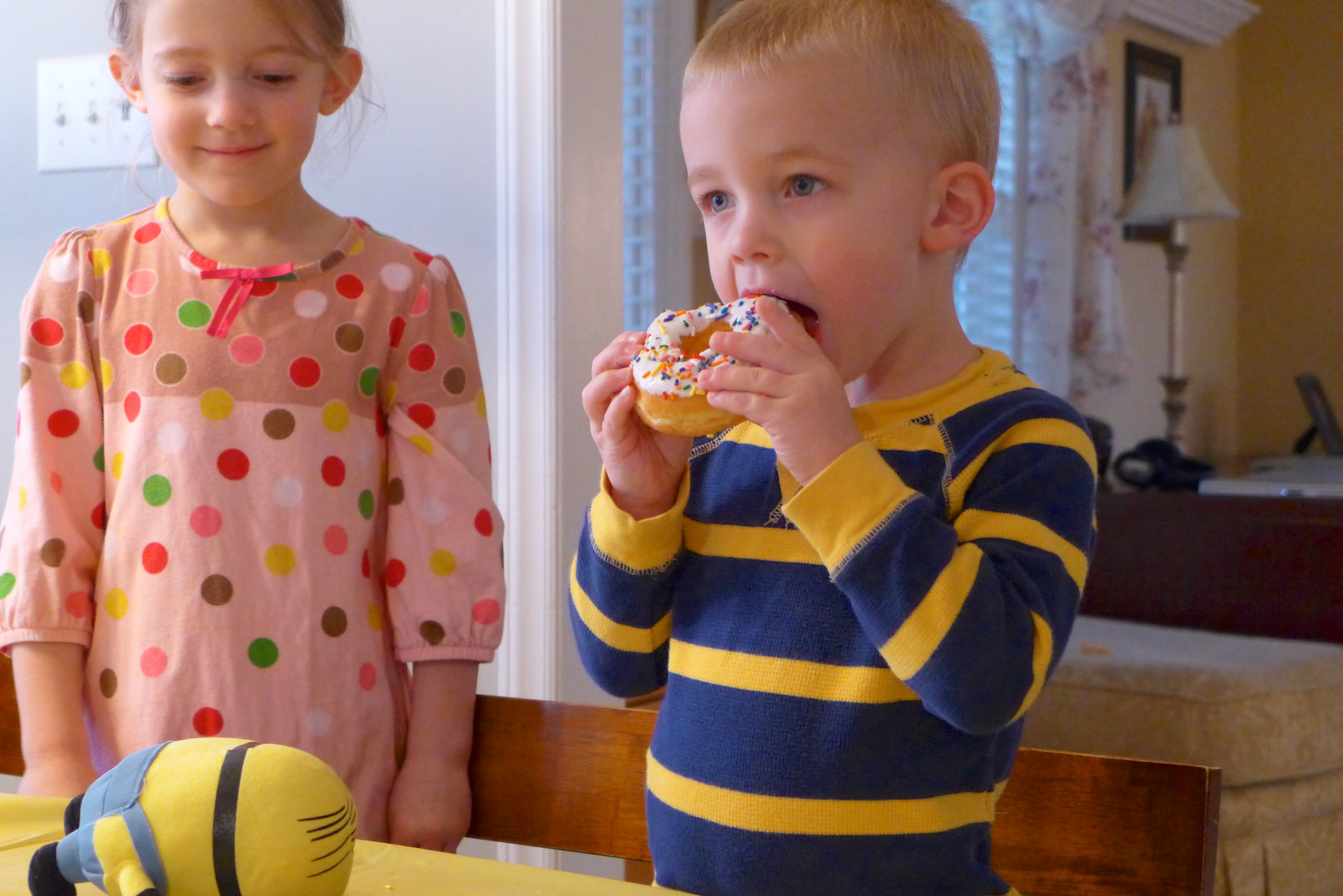 Daddy Duff had arisen early to acquire the donuts for birthday breakfast, and it was time to partake in some early morning sugar.