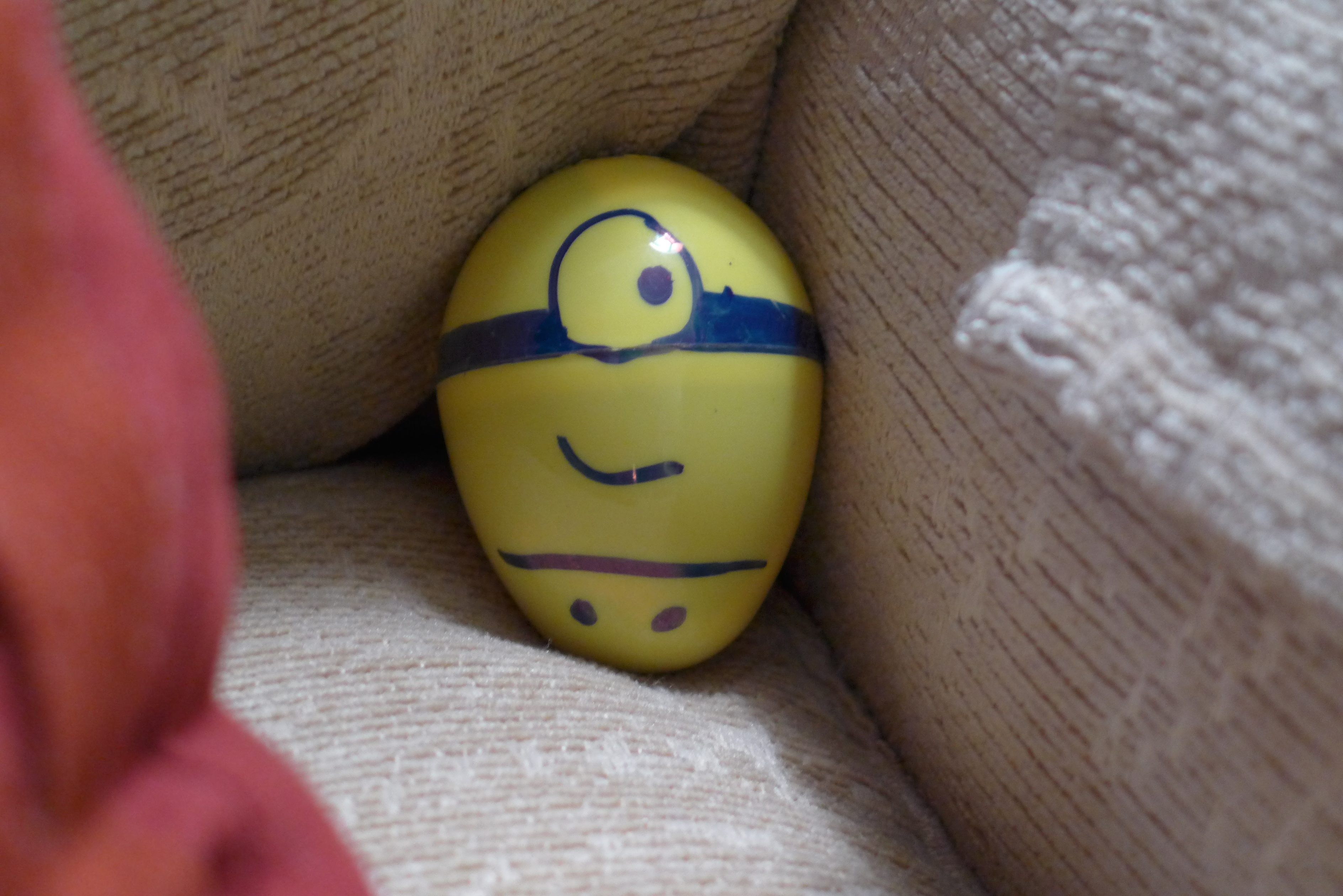 She had turned yellow Easter eggs into minions, filled them with chocolate surprises, and then hidden them all over the house.