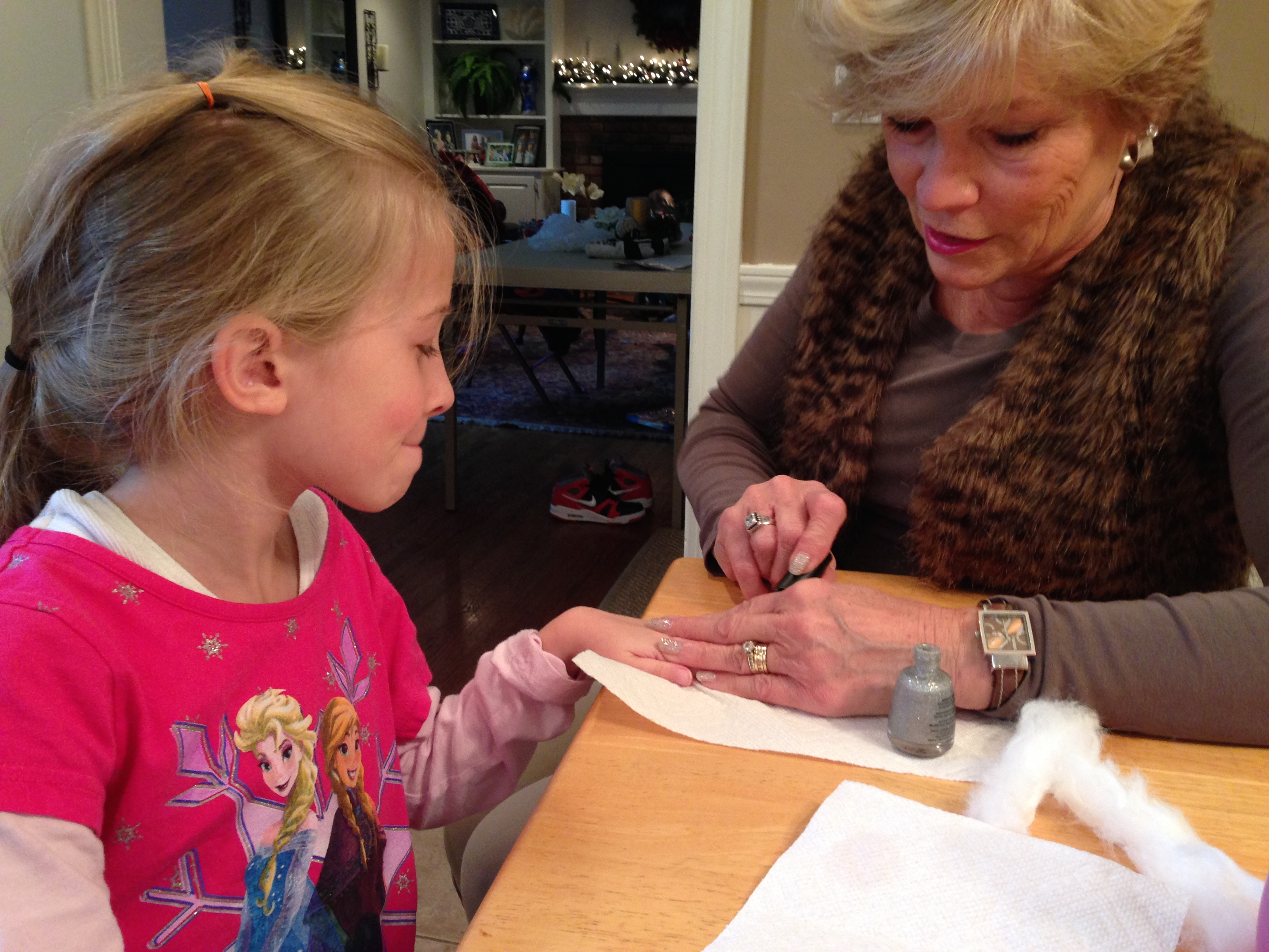 Mimi sparkled my girl up with some silver glitter nail polish.