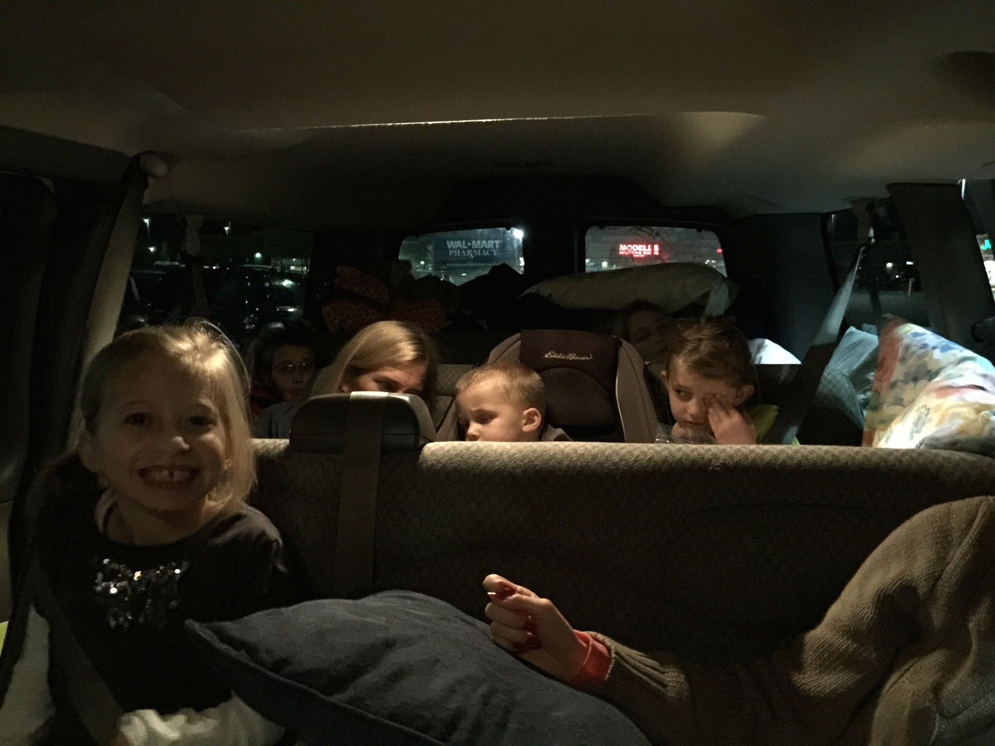 Our van was packed extremely tight, the carseats were doused in vomit, and there were way too many individual bags.